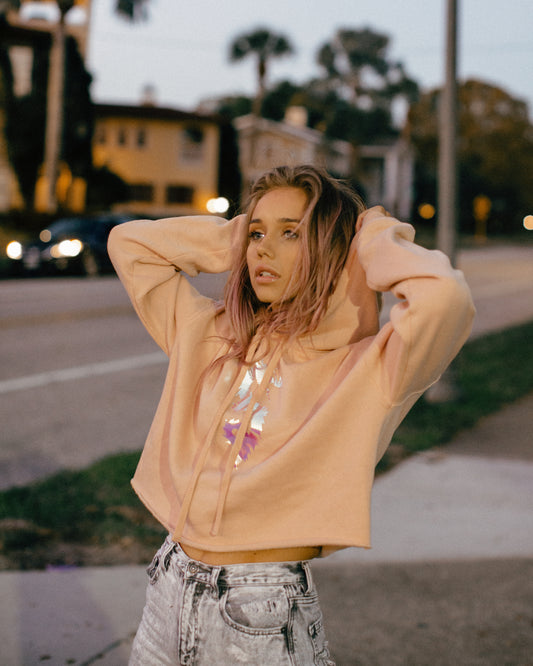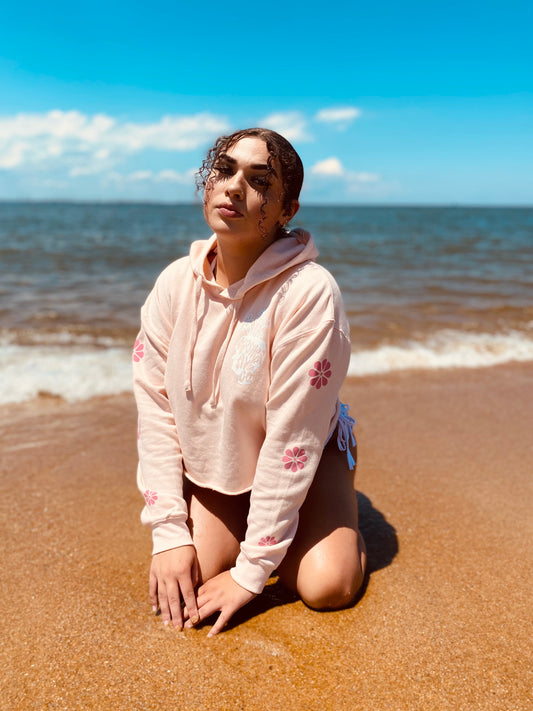 Smell the Flowers Peach Crop Hoodie
